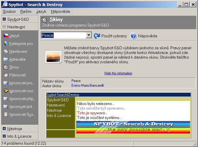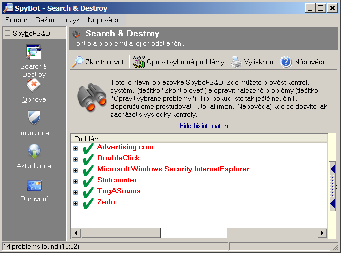 S přibývajícím množstvím škodlivého obsahu (ať už se jedná o spyware, adware či malware) jeden program k plnohodnotné ochraně počítače často nestačí. Vyzkoušejte Spybot, který se dá efektivně zkombinovat s užíváním některého programu, o kterém jsme psali dříve.