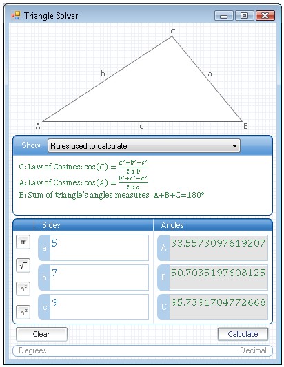 Goniometrické funkce? Pythagorova věta? Euklidova věta? Žádný problém. Zadejte příklad a trojúhelník je vyřešený. Grafické zobrazení je otázkou okamžiku. Stačí už jen vytisknout, vystřihnout a nalepit do sešitu domácích úloh.