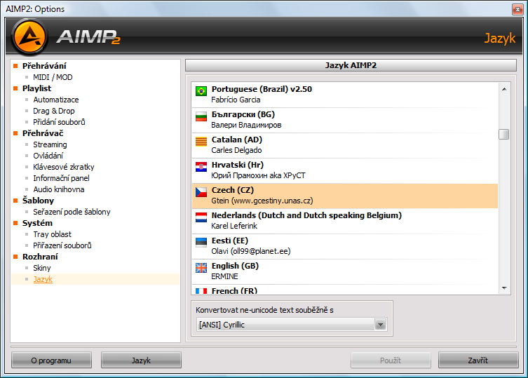 Hudební přehrávač AIMP má na svědomí ruský autor Artem Izmailov. Program nemá ani 3 MB a spustíte ho na všech Windows vydaných od roku 2000. Instalace je bezproblémová a ihned po ní vás program vybídne ke zvolení jazyka. Na výběr jich je opravdu mnoho a čeština mezi nimi nechybí. AIMP nás tedy hned na začátku potěšil. Jak si povede dál?