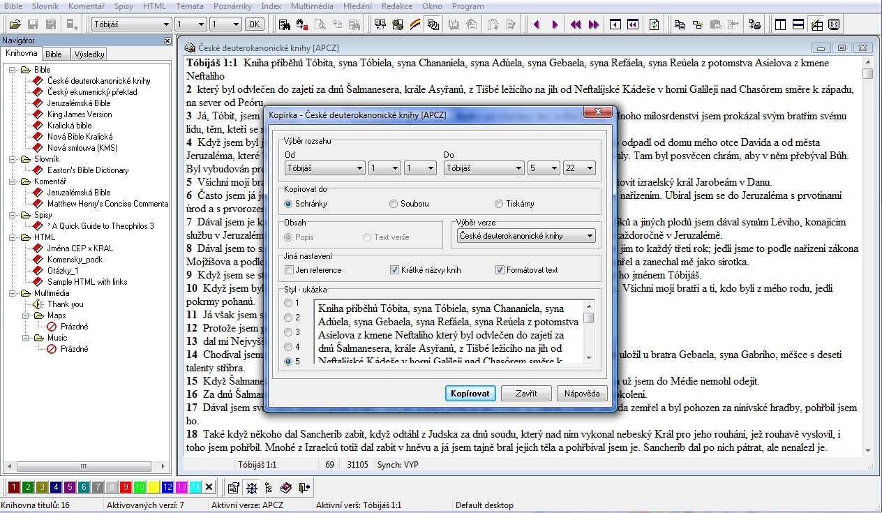 Pro kopírování veršů slouží takzvaná kopírka, tedy nástroj, který vám umožní nastavit, jak má zkopírovaná oblast vypadat. Možností je několik a každý si snad vybere. Zde je jen škoda, že kopírce musíte zadat poslední verš, který chcete kopírovat, ručně, nikoli pouhým označením textu do bloku.