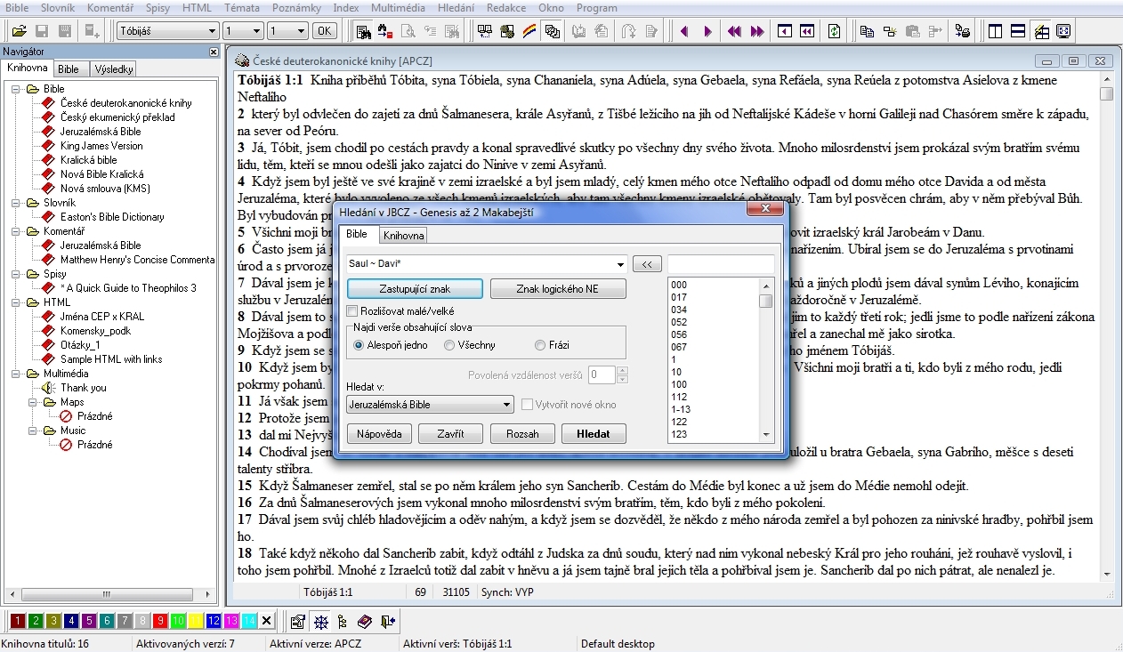 Tento program slouží k pohodlnému studiu Bible v elektronické podobě. Součástí programu jsou různé překlady Bible, slovníky, nástroje pro snadnější pochopení textu atd. Samozřejmostí je možnost rychlého fultextového vyhledávání a existuje i možnost použití záložek.