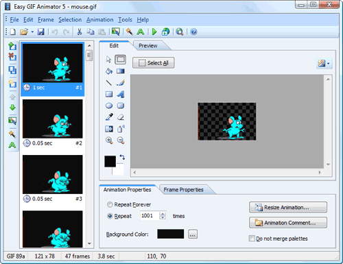 Pomocí programu Easy GIF Animator nemusíte pouze vytvářet nové animace, můžete jej vhodně využít také k úpravě již existujících obrázků, tlačítek a bannerů. Vaši animaci samozřejmě můžete obohatit o zvukový doprovod, vložit pohyblivé textové efekty, nebo upravit průhlednost. Zajímavá je též možnost uložit výsledné dílo ve formátu SWF nebo exportovat do AVI. Nemusíte se tak omezovat pouze na klasický formát GIF.