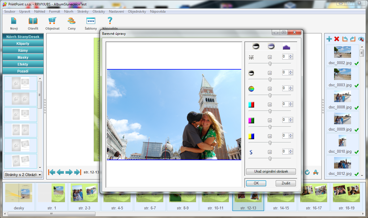 Jas, kontrast, ostrost, sytost barev a úrovně jednotlivých RGB barev je navíc možné u každé fotky editovat samostatně. Po kliknutí pravým tlačítkem na obrázek stačí vybrat volbu „barevné úpravy“. Velmi pozitivně hodnotím také zvláštní efekty, kam patří průsvitnost a důležitý efekt pro odstranění červených očí.