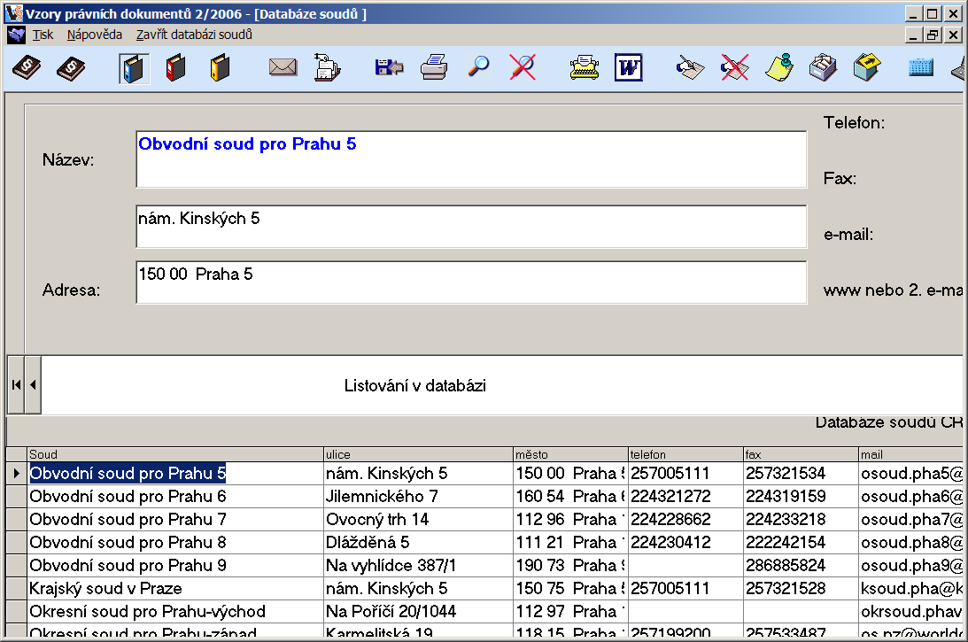 Užitečným pomocníkem bezesporu jsou i databáze soudů, notářů a státních zástupců. Program pamatuje i na ukládání námi editovaných záznamů, společností nebo dalších relevantních údajů. K dispozici jsou i některé z podpůrných nástrojů, jako je databáze poštovních směrovacích čísel nebo rychlé zaznamenávání poznámek.