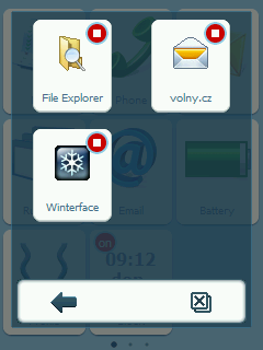 Zástupce na jednotlivé aplikace lze po displeji libovolně přesouvat, můžeme je dokonce umístit i na jinou záložku či smazat. Možnosti Winterface jsou však mnohem rozsáhlejší, kromě programů lze do launcheru přidat také zástupce na libovolný kontakt, položku v systémovém nastavení, soubor či odkaz na stránku uloženou v Pocket Internet Exploreru.