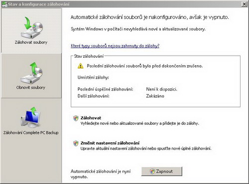 Přesto drobné nedostatky je zálohování ve Vistě v dostačující formě pro potřeby domácího uživatele. Trochu mě mrzí, že při vytváření kompletní zálohy ve Vistě Ultimate není v nabídce uložení na síťový disk – při jednoduchých zálohách tam totiž tato možnost je a ani žádným fíglem se mi operační systém nepodařilo přesvědčit, aby zálohování na síťový disk při kompletní záloze nabídl. Škoda.
