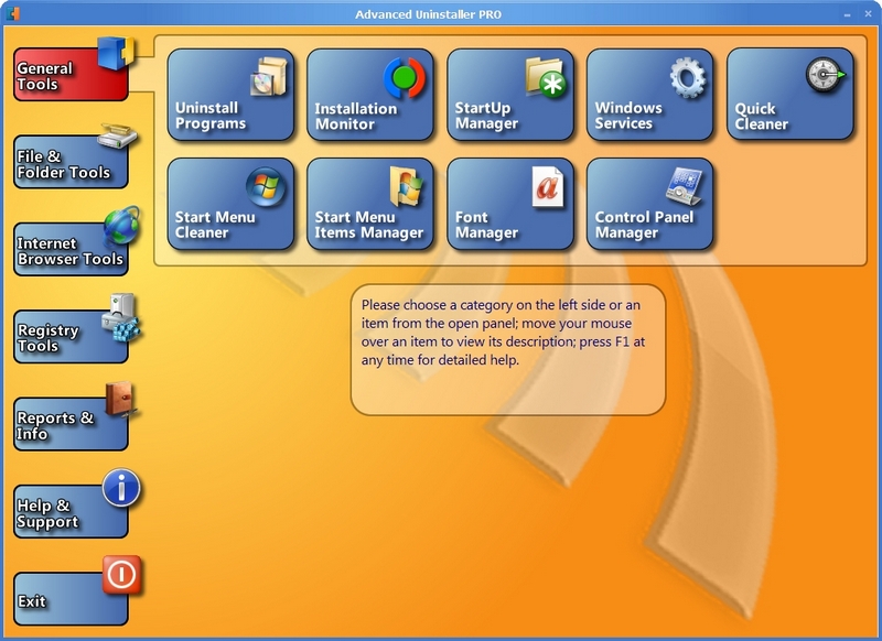 Nejdůležitější nástroje naleznete v sekci „General Tools“. Pro jednoduchá odinstalování programů je nejlepší využít hned první nabídky „Uninstall Programs“. Oproti běžné nabídce s odinstalací programů ve Windows má výhodu v zobrazení nově nainstalovaných nebo poškozených programů, jednotlivých aktualizacích či možnosti vybrat najednou více programů k odinstalování. Užitečné je tlačítko „Forced Removal“. S jeho pomocí lze program, který nelze obyčejným způsobem odinstalovat (třeba různé malware, adware a podobné ukázkové programy), odebrat jediným kliknutím. Také lze změnit zobrazení programů a zobrazit podrobnosti o každém z nich.